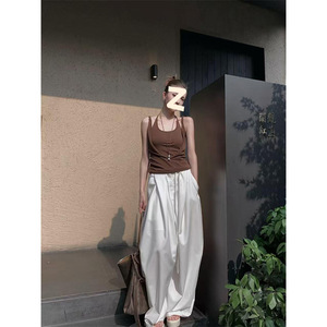 纯欲修身显瘦假两件吊带背心上衣两件套女高腰休闲阔腿裤