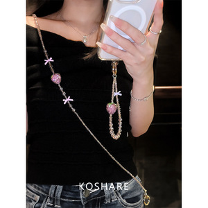 镶钻草莓斜挎可背重工手机链条精致高级感挂脖手拎水晶挂饰ins风