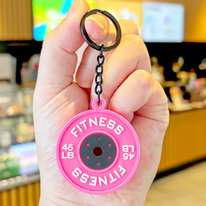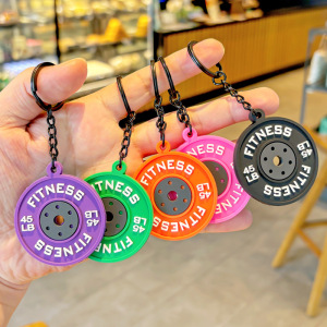 创意运动健身系列迷杠铃片钥匙扣运动训练小礼品男女学生书包挂件