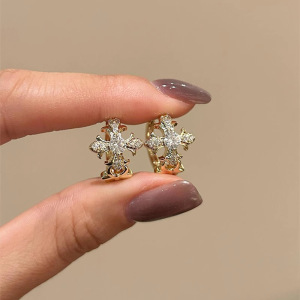 法式复古重工十字架耳扣精致小巧个性独特百搭气质风耳环耳饰
