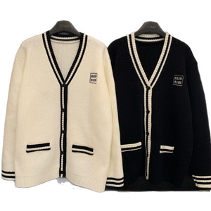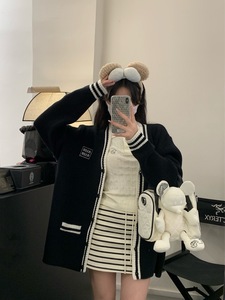 mm家24ss新款学院风撞色V领大版型开衫针织黑白蓝色