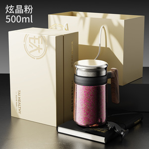 纯钛办公保温杯大容量带手柄钛杯茶水分离泡茶杯高档礼品杯带茶隔