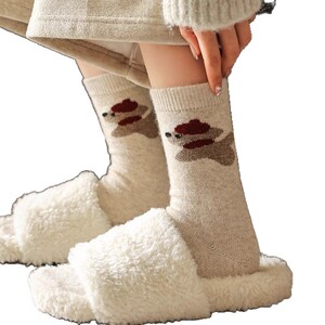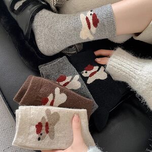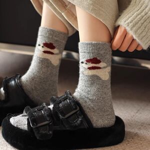 儿童袜子女童冬天卡通可爱小狗韩系男童保暖棉袜灰色美拉德堆堆袜