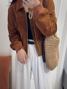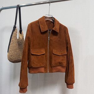 山羊皮反绒皮衣女2025秋新款高品质真皮绒面皮夹克休闲外套小个子