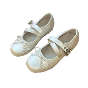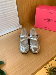 【现货6cm小芭蕾】内增高芭蕾舞玛丽珍银色单鞋韩女蝴蝶结平底鞋