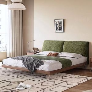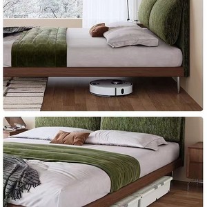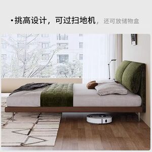意式大象耳朵床复古雪尼尔布床轻奢极简实木床现代简约齐边双人床