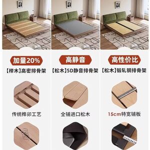 榉木款:大象耳朵床+9D灰全拆独立袋装床垫