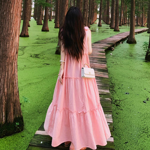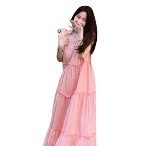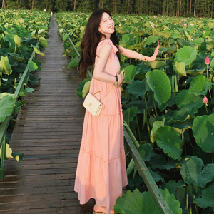 粉色无袖吊带连衣裙子女夏季2025新款爆款巨好看海边度假绝美长裙