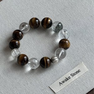 幸柿|天然黄虎眼巴西透体双A白水晶半盆绿幽灵S925纯银女生手串