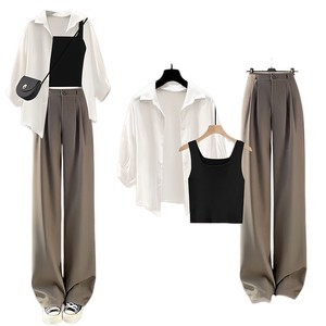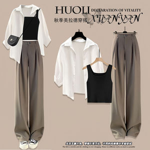 卡其西装裤+白衬衫+黑背心 【三件装】