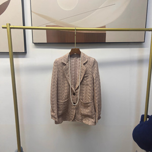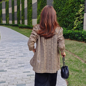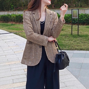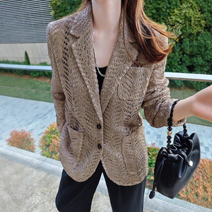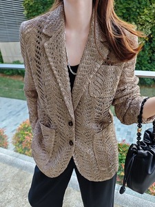 2025早秋款优雅气质重工珠片镂空内衬翻领长袖休闲西装外套不退换
