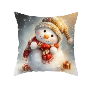 新款圣诞节抱枕套圣诞雪人宝宝印花靠枕套亚马逊家居沙发靠垫