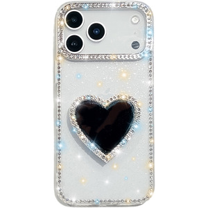 爱心镜子支架手机壳适用苹果17Air时尚16E闪粉15PROMAX闪钻壳跨境