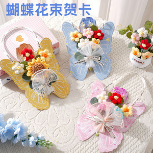 教师节礼物diy材料包送老师实用礼品成品针织永生花蝴蝶翅膀贺卡