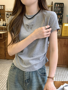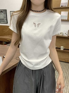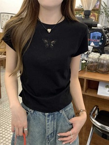 2025年夏 美しい中空蝶右肩バージョン 小柄な女性向け スリムで多用途なユニークでシックなプリーツトップス