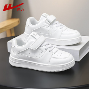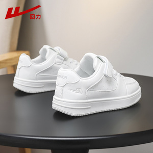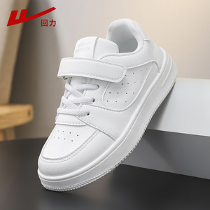 回力童鞋儿童小白鞋秋季新款皮面防水中大童男女孩白色休闲板鞋子