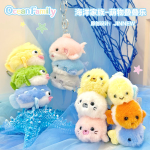 原创海洋家族叠叠乐小鱼毛绒挂件可爱书包钥匙扣卡通公仔玩偶批发