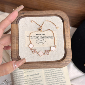 小红书爆款精工四叶草花朵手链女可调节闪钻轻奢精致温柔时尚手链