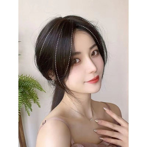 女性用8の字前髪ウィッグ、3D頭頂薄型中間分け前髪、自然な額をシミュレート、胎児毛をカバーするヘアライン前髪