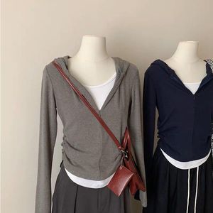 杭州四季青女装广州十三行秋季新款假两件连帽长袖恤内搭打底衫
