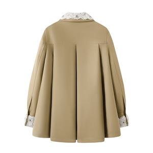 现货一件代发2025秋新款宽松气质蕾丝娃娃领中长款外套LF25Q21SC2