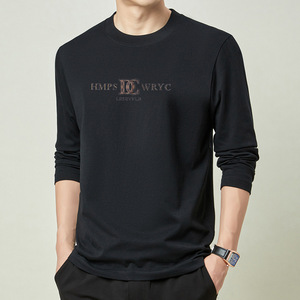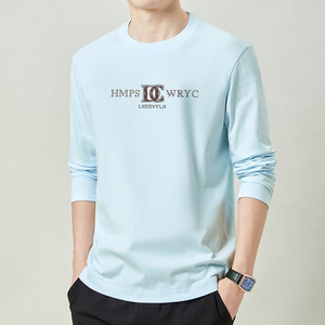 春秋季100%纯棉男士长袖t恤卫衣全棉男式上衣男装圆领体恤打底衫