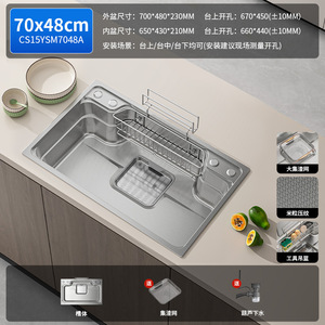 亮银升级4.0「70x48cm」不含龙头+吊篮+下水器