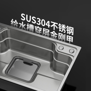 水槽304不锈钢日式过滤大单槽多功能小米粒洗菜盆加厚一体槽碗池