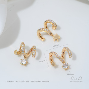 14K包金镶锆石带五角星吊坠线条隔珠diy手工项链手链饰品配件材料