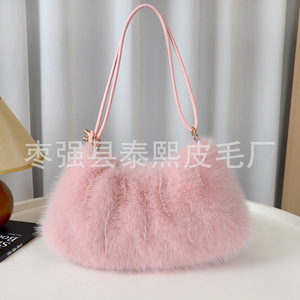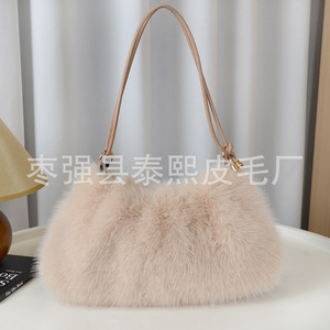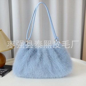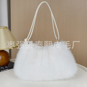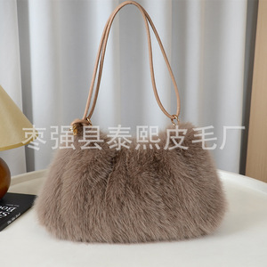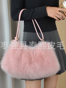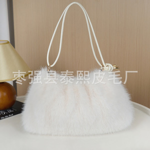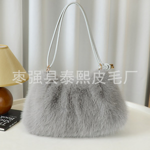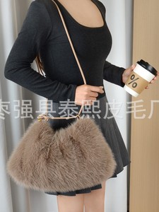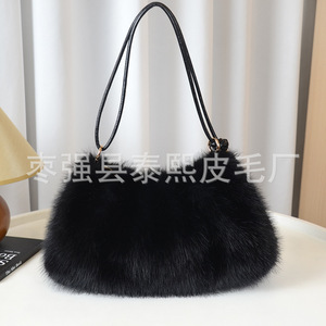 秋冬新款仿狐狸毛腋下包时尚褶皱毛绒包包单肩包手提包托特女包
