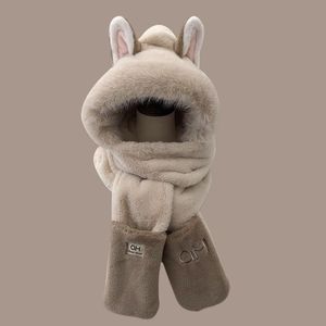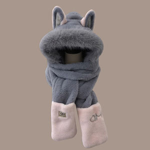 冬天帽子加厚三件套毛茸茸火狐狸耳朵保暖滑雪围巾手套一体百搭