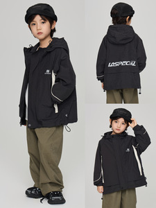 2025秋季新款男童格子工装外套儿童洋气休闲连帽风衣中大童冲锋衣