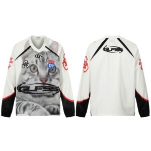 GT150美式复古西海岸潮流运动球服款嘻哈猫咪设计男式宽松长袖T恤