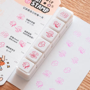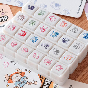 迷你可爱日常打卡六联按钮印章高颜值学生手帐diy素材装饰送礼物