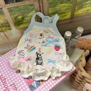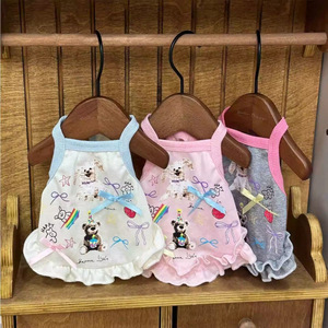 夏季新款狗狗衣服吊带可爱印花公仔春夏季薄款泰迪比熊小型犬服装