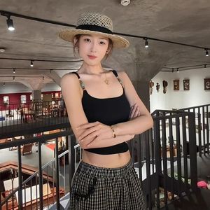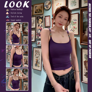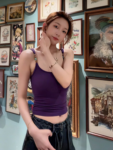 复古美式串珠吊带小背心女夏季修身显瘦内搭纯欲辣妹短款上衣外穿