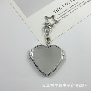 韩国金属爱心镜子钥匙扣 实用包包挂饰 双面心形镜子 DIY挂饰