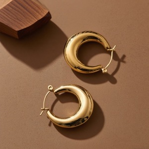 跨境不锈钢几何椭圆耳环女欧美复古风金色素圈小众高级感气质耳饰