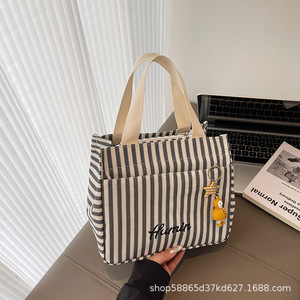 大容量帆布包包女2025新款百搭条纹单肩包学生上课通勤手提托特包