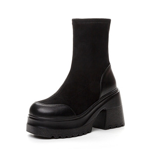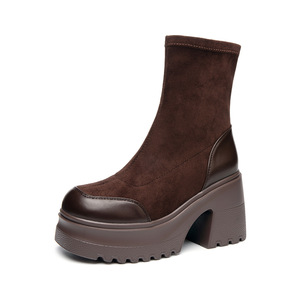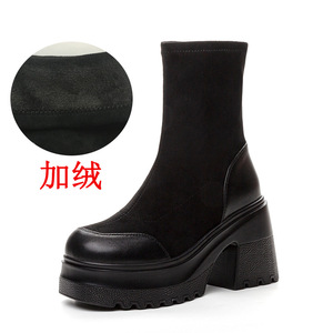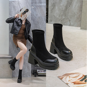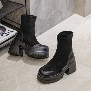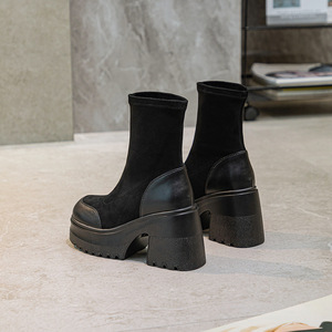 跟10cm马丁靴女高跟靴2025秋季新款厚底短靴粗跟弹力靴单靴瘦瘦靴
