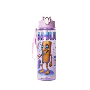 外贸跨境山海经卡通透明吸管塑料水杯ing儿童手提弹盖水壶太空杯