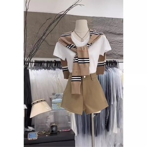 夏季小个子穿搭一整套女装新款爆款时尚披肩短袖休闲短裤三件套装
