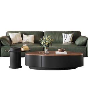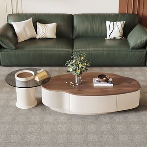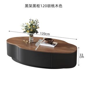 法式中古风胡桃木色芒果茶几客厅椭圆形茶桌小户型家用极简复古风