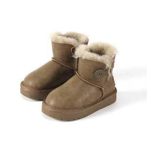 宝宝防泼水雪地靴儿童皮毛一体童靴亮皮加厚棉鞋冬季羊毛女童靴子