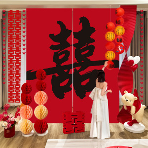 订婚宴布置装饰场景中式条幅挂布背景墙全套摆件摆台套餐批发