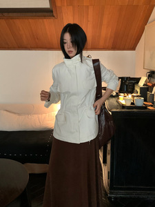 FOX ROOM 工装风立领夹克外套2025秋新款口袋抽绳中长款风衣W2302
