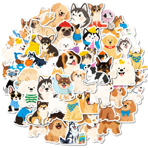 56张新款手绘狗狗卡通涂鸦贴纸跨境外贸可爱萌宠手账电脑装饰贴画