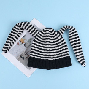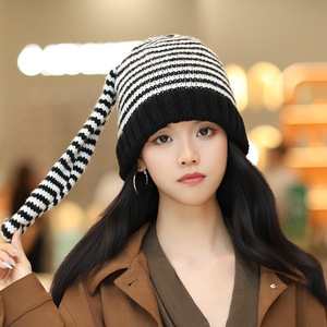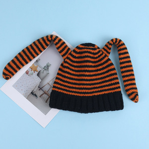 跨境潮牌可爱兔耳朵针织条纹套头毛线帽子女y2k逛街时尚保暖冷帽