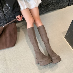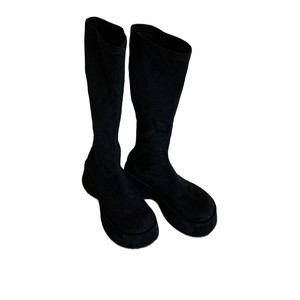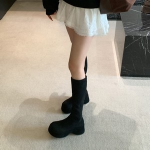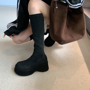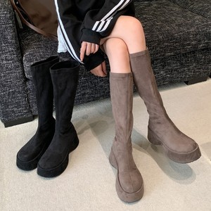 松糕厚底小个子瘦瘦长靴女鞋2025新款秋冬季绒面弹力袜靴长筒靴子