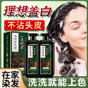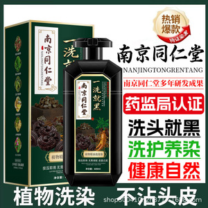 南京同仁堂染发剂天然植物萃取染发膏一洗就黑不沾头皮自己在家染